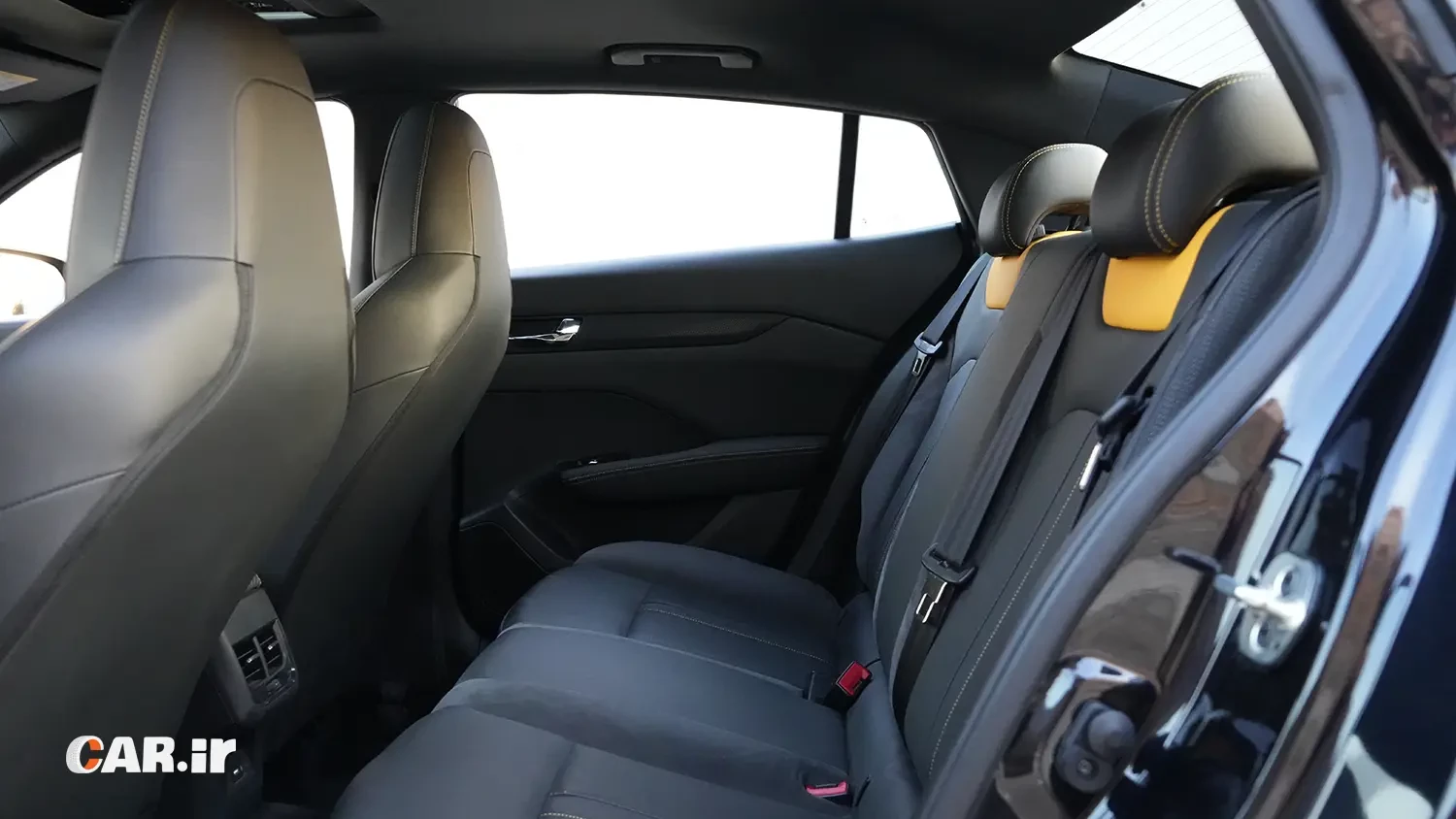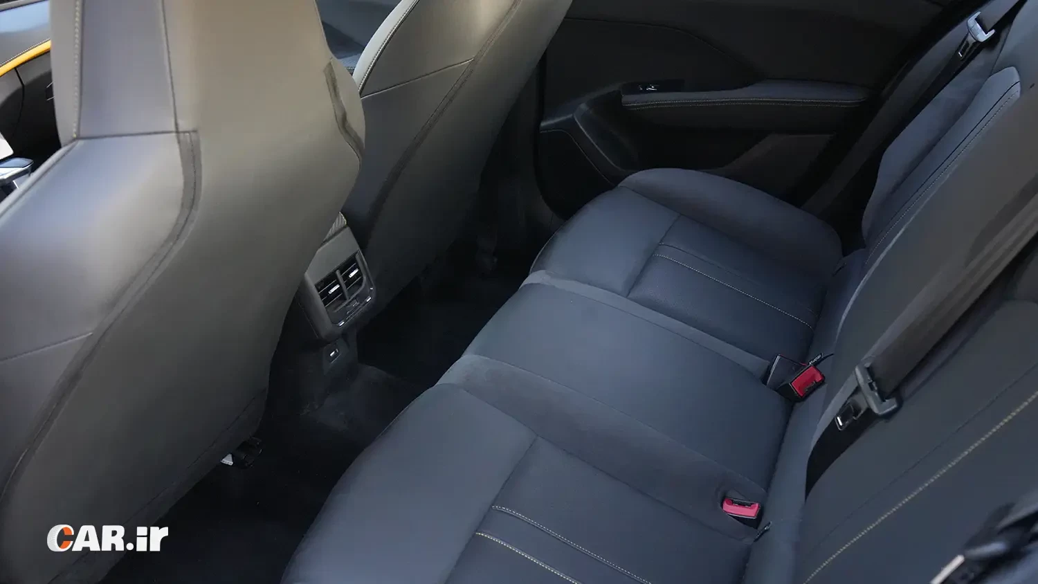 در ردیف دوم نیز جای پای مناسبی برای سرنشینان وجود دارد، اما صندلیهای بزرگ و یک تکه ردیف جلو کمی فضای نورگیری ردیف عقب را محدود میکنند.