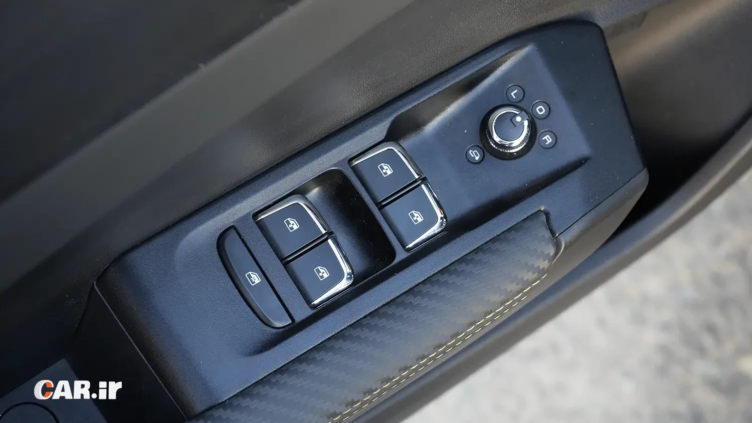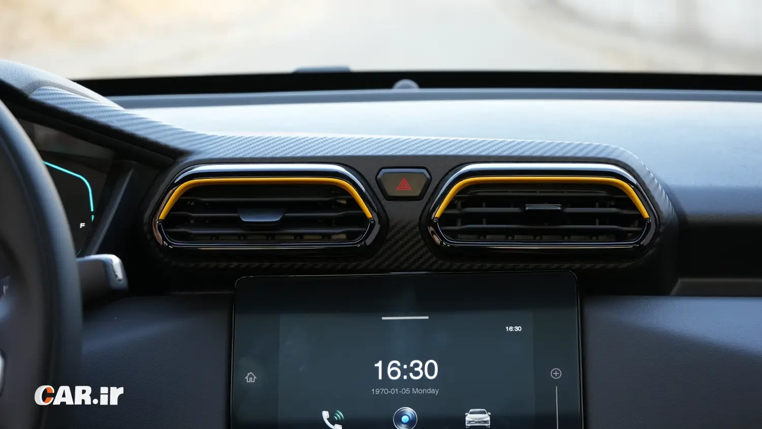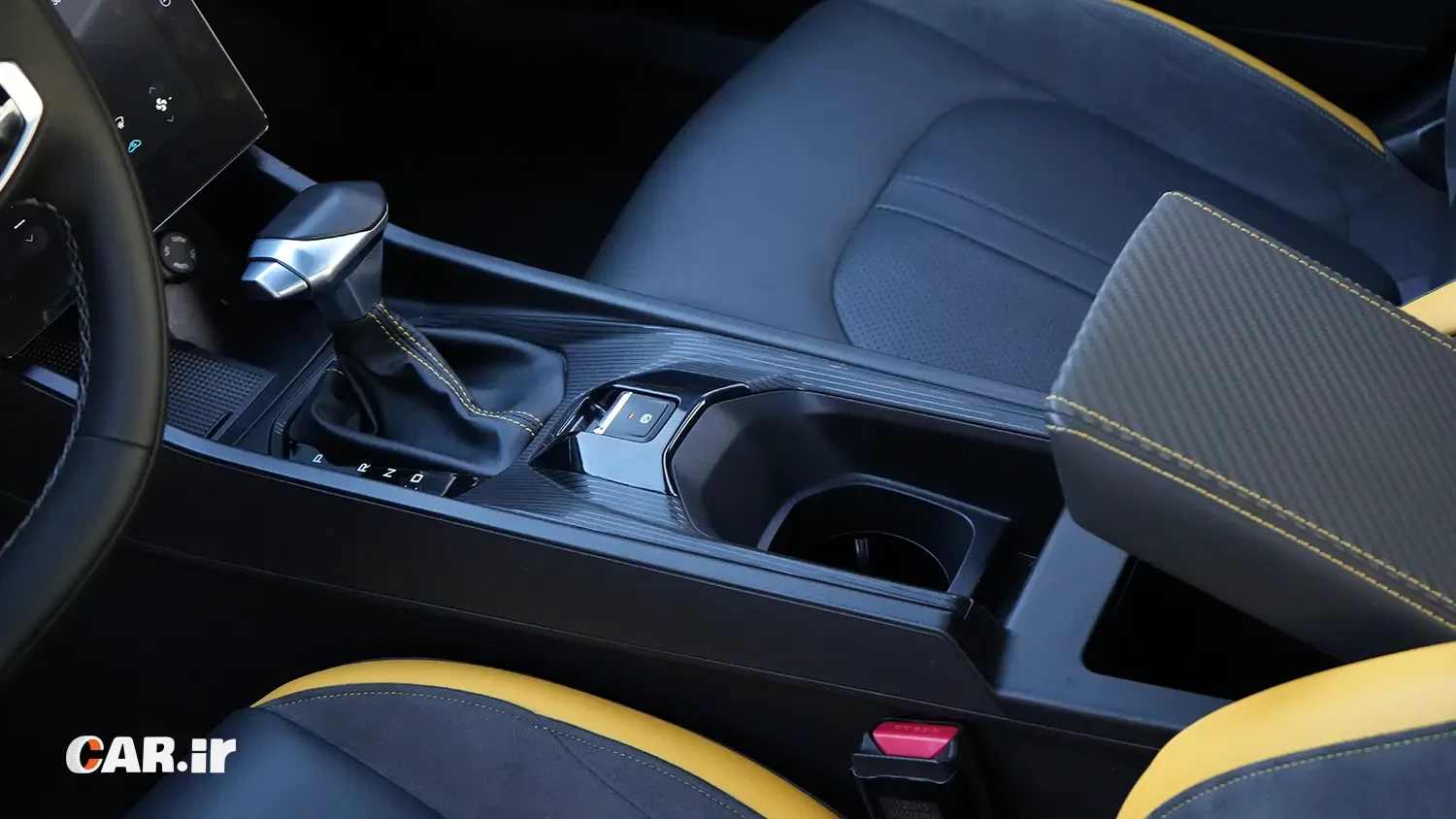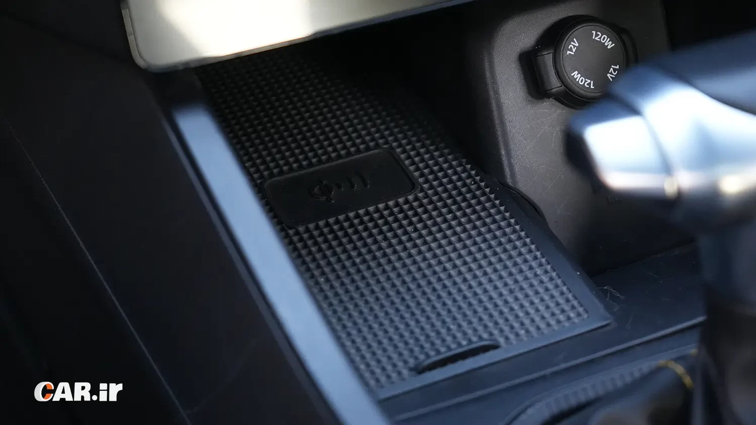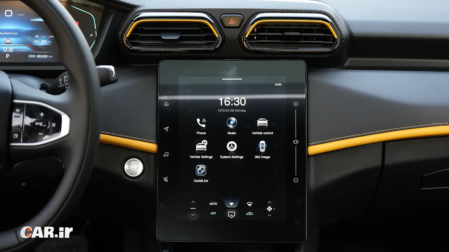 در بین امکانات مولتی مدیا با دوربین 360 درجه نیز مواجه میشوید که امکان نمایش فضای زیرین خودرو را نیز ارائه میدهد؛ آرین موتور این ویژگی را تحت عنوان دوربین 540 با کیفیت HD در کاتالوگ اکو ذکر کرده است. در میان کنسول تنها یک کلید میتوان دید که آن هم برای کنترل ترمز پارک برقی است، تنظیم صندلی راننده در 6 جهت و شاگرد در 4 جهت، هر دو به صورت برقی امکان پذیر است. کمی جلوتر از دسته دنده فضایی برای شارژ بدون سیم گوشی تعبیه شده و سانروف نیز جزو لیست امکانات است.
