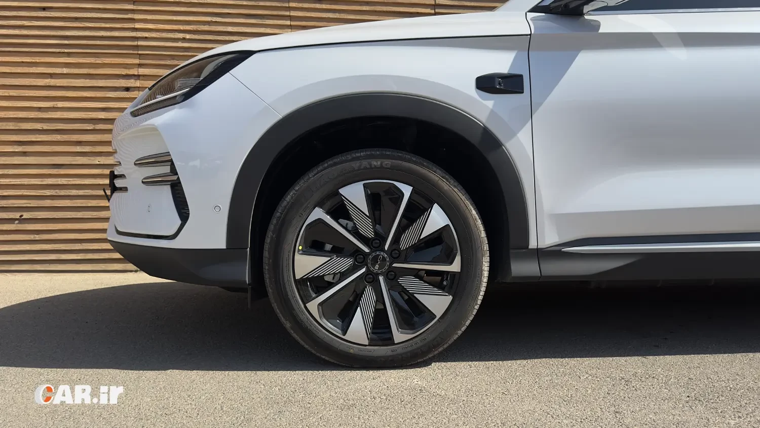 در نمای جانبی خط شانهای از چراغهای جلو آغاز شده و تا بالای چراغهای عقب امتداد مییابد. این بخش طراحی سادهای دارد اما رینگهای ۱۹ اینچی دو رنگ با طرحی چشمگیر، جلوه آن را ارتقا دادهاند.