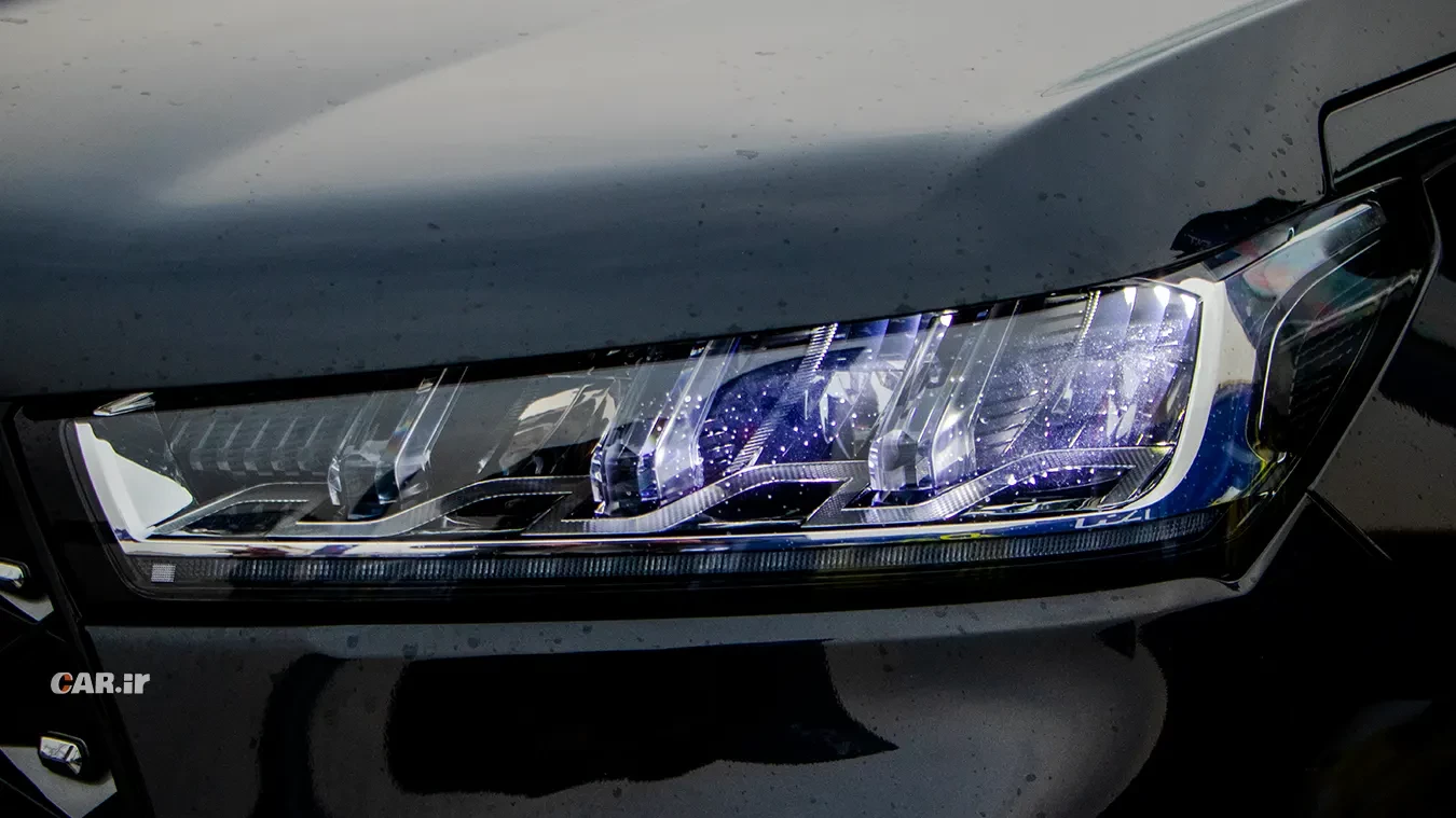 در نمای جلو، بجز جلو پنجره کهکشانی، فرم نوین چراغ های ماتریسی تیگو 7 پرو جلب تجه میکند، همچنین فرم مکعبی نمای جلوی خودرو نیز به عضلانی تر بنظر رسیدن آن کمک میکند.