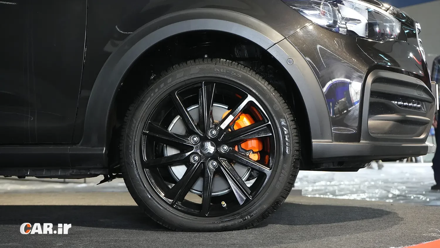 یکی از نکات قابل نقد در طراحی، استفاده از تایرها و رینگهای باریک است. این انتخاب باعث شده نمای جانبی خودرو تا حدی خالی و نامتناسب دیده شود و حس قدرت و استحکام بدنه کمتر به چشم بیاید.