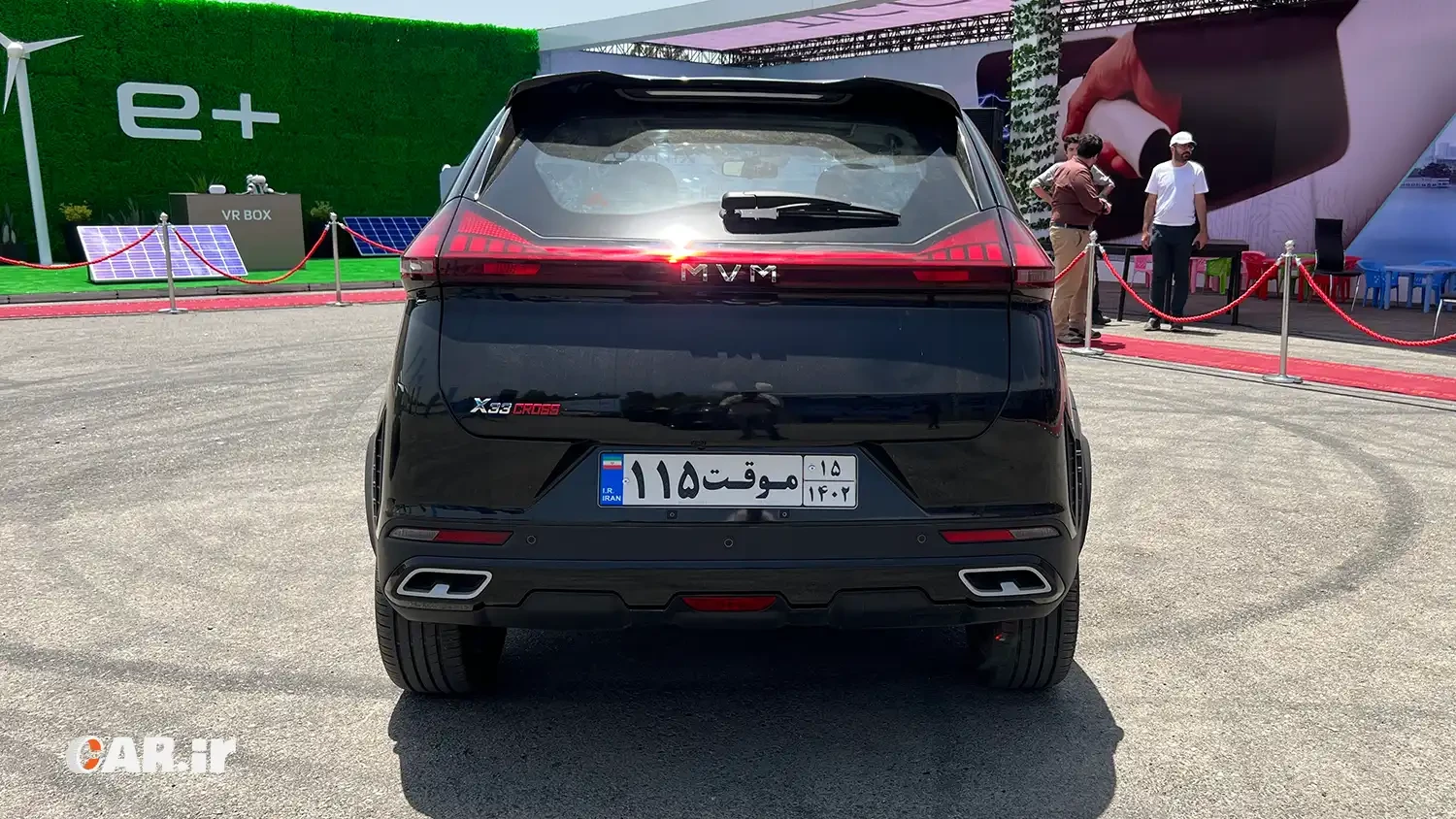 نمای عقب X33 کراس نیز بی شباهت به FX نبوده و چری از چراغ های به هم پیوسته در این خودرو استفاده کرده که نوشته MVM نیز در وسط آن ها دیده می شود.