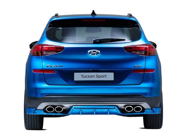 این خودرو که به عنوان پرچمدار خانوادهی توسان فیس لیفت رونمایی شده از کیت بدنهی برجستهای سود میبرد که ظاهر آن را مشابه مدل N Line کرده است. قطعاً این خودرو خشنتر از توسان اسپورت بازار آمریکا به نظر میرسد.