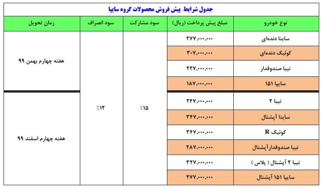 طرح جدید پیش فروش محصولات شرکت سایپا از فردا آغاز خواهد شد.