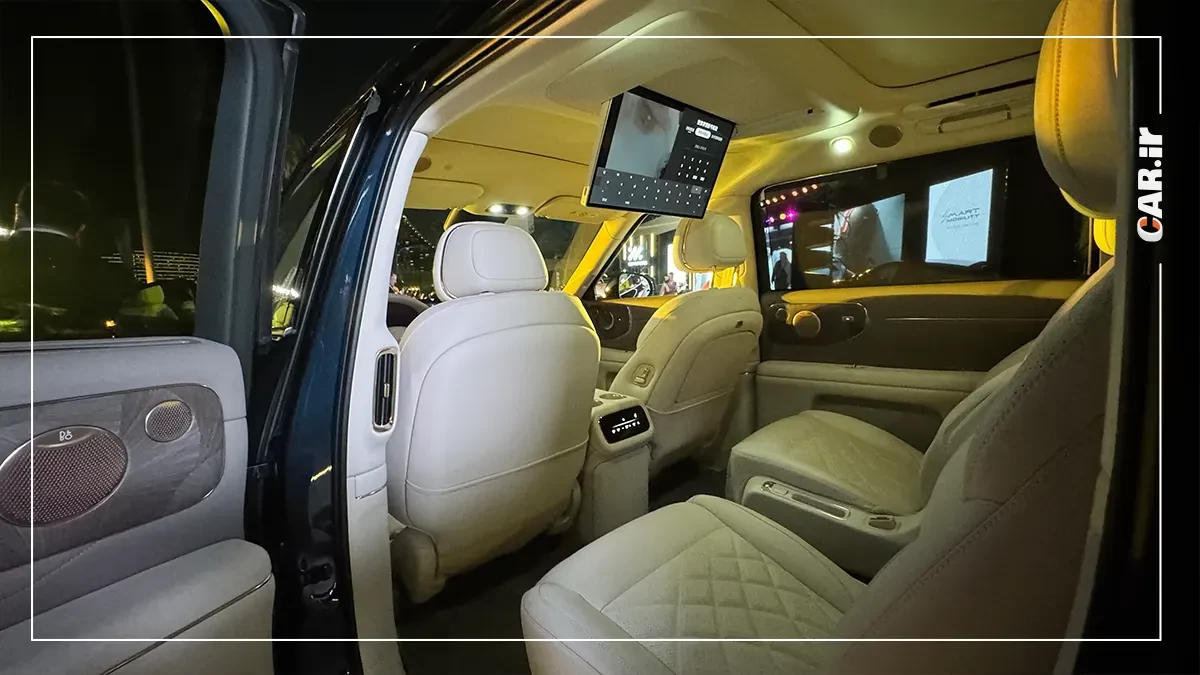 چیدمان صندلیها بهصورت ۶ نفره (۲+۲+۲) است و ردیف دوم به یک نمایشگر سقفی ۲۱.۵ اینچی مجهز شده؛ صندلیهای مستقل این بخش دارای گرمکن، سردکن و ماساژ هستند تا تجربهای نزدیک به پرواز فرستکلاس فراهم شود.